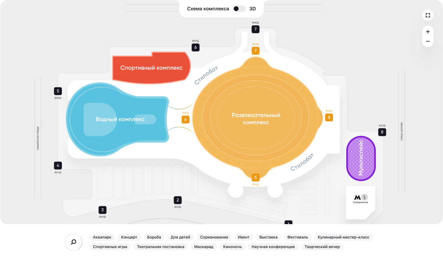 Скачай приложение и получай актуальную информацию о событиях и акциях, зарабатывай очки и оплачивай ими любые услуги комплекса