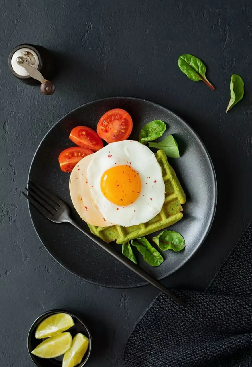 Эта вафля с яичницей — идеальное сочетание хрустящей текстуры и нежного вкуса. Подается горячей, она станет отличным началом вашего дня!